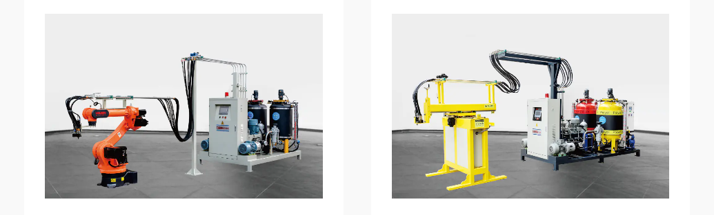Полиуретан является основным промышленным элементом оборудования. Он использует высокое давление с точным метром и смешивает полиуретановые черно -белые материалы (изоцианат и полиэфир/полиэфир) и другие добавки на высокой скорости. Затем смесь вводится в форму или полость, где она быстро реагирует, пенится и затвердевает. Этот процесс может производить широкий спектр высокопроизводительных пенопластов, от мягких до твердых и от низкой до высокой плотности.